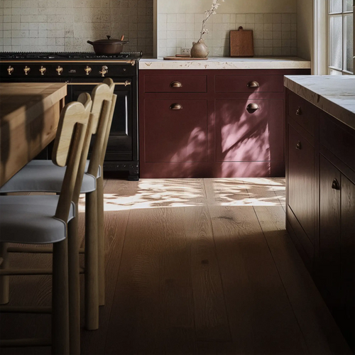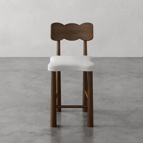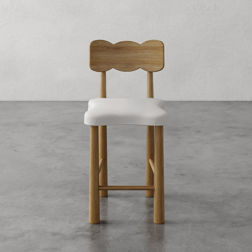 The Madeleine Counter Stool brings refined French modern design to the kitchen. A unique bow-shaped back offers gentle support, while the solid wood frame adds warmth and structure. The contoured upholstered seat is crafted from woven performance-grade fabric that resists spills and stains, combining comfort with everyday durability. Available in both oak and walnut finishes.