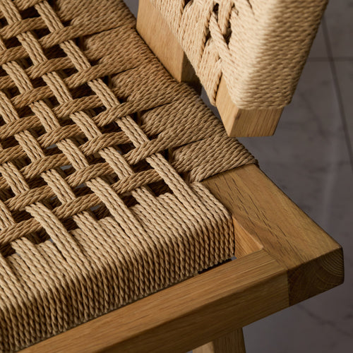 The Mercier chair is a solid Oak dining chair featuring a handwoven seat and back, perfectly contoured for optimal seating comfort. Its modern silhouette is reminiscent of the iconic designs by Pierre Jeanneret, blending classic inspiration with timeless style. Crafted from high-quality Oak, this chair offers both durability and aesthetic appeal. The handwoven details provide a unique texture, enhancing its sophisticated look. Ideal for those who appreciate fine craftsmanship, the Mercier chair is a standout piece for any dining room.