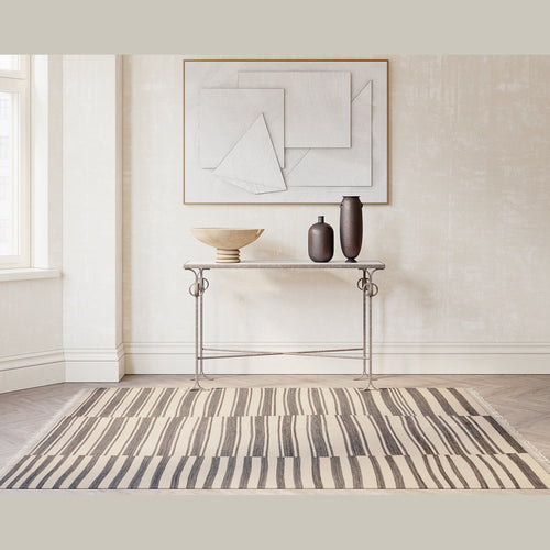 Imbued with a sense of movement, the Metlili Collection nods to the glorious imperfection found in all handcrafted textiles. Handwoven out of wool and finished with an antique wash that mutes colors and ages the material, each pattern has a vintage feel. More interesting than perfect, the irregularities in their lines feel playful and experimental.