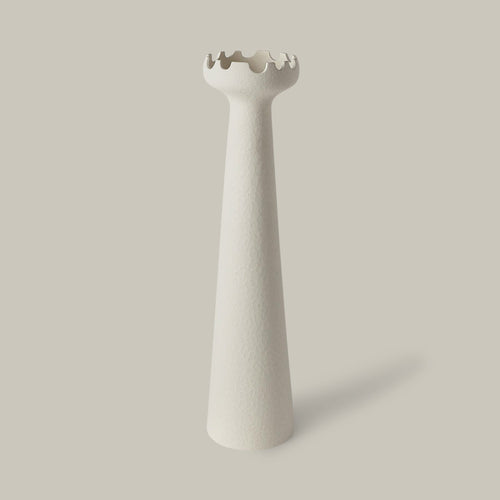 The Overscale Vases in Matte White combine scale and organic form for decorative drama. Whether alone or in a grouping, these vases are the perfect graphic elements to complement any decor. Listed from left to right as shown in the image: Deoune Vase, Pasteur Vase, Fenouil Vase, Panisse Vase, and Muguet Vase.