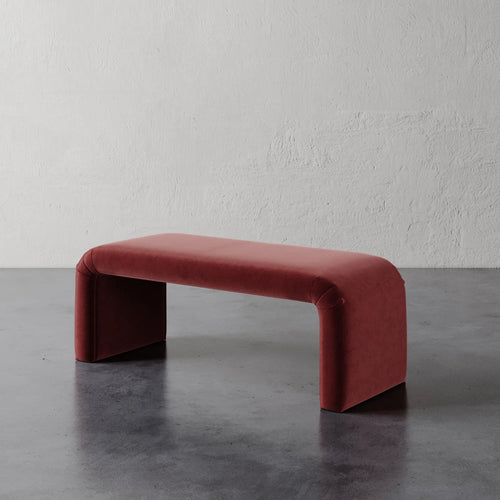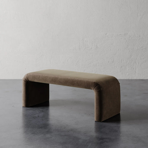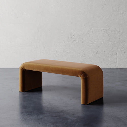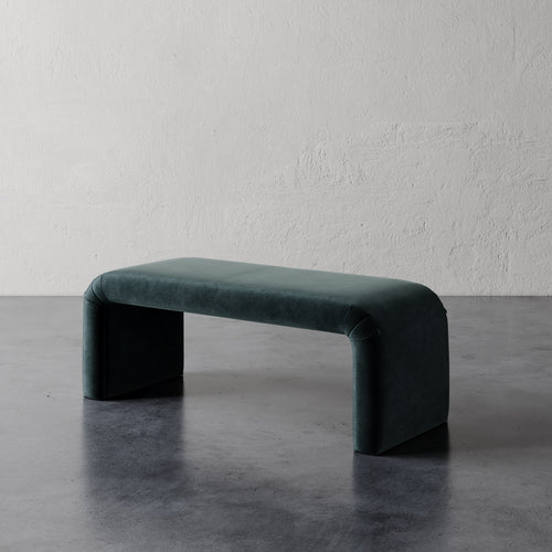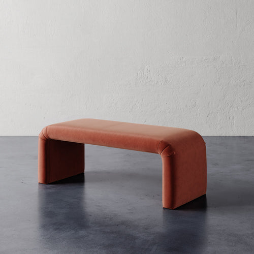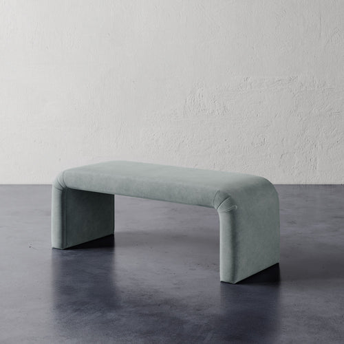 The Nadia Bench is a study in sculptural simplicity, designed with graceful curves and refined, hand-tailored pleating at each corner. Fully upholstered for a soft, streamlined look, it brings visual balance and subtle luxury to any space. Available in two versatile lengths—62" and 48"—it’s ideal for hallways, entryways, or placed at the foot of a bed. Both functional and artful, the Nadia Bench is a made-to-order piece that reflects thoughtful craftsmanship and timeless design.