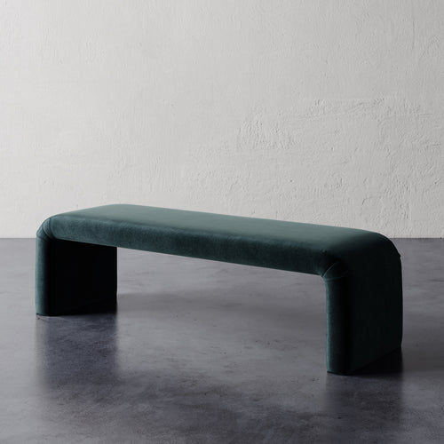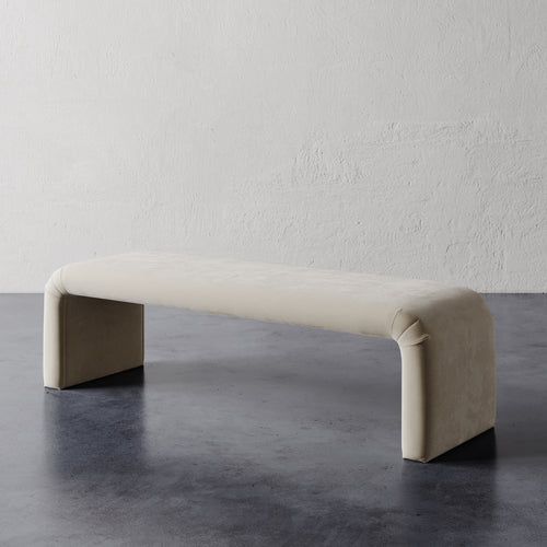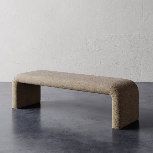 The Nadia Bench is a study in sculptural simplicity, designed with graceful curves and refined, hand-tailored pleating at each corner. Fully upholstered for a soft, streamlined look, it brings visual balance and subtle luxury to any space. Available in two versatile lengths—62" and 48"—it’s ideal for hallways, entryways, or placed at the foot of a bed. Both functional and artful, the Nadia Bench is a made-to-order piece that reflects thoughtful craftsmanship and timeless design.