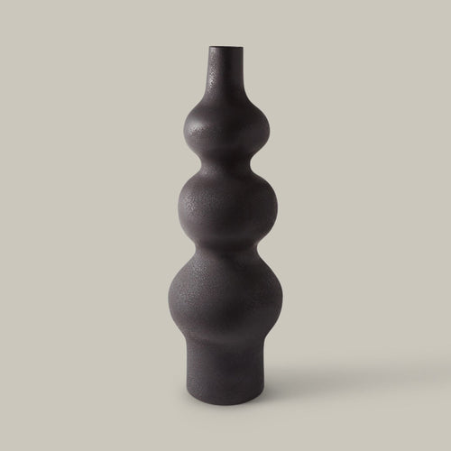 The Overscale Vases in Black combine scale and organic form for decorative drama. Whether alone or in a grouping, these vases are the perfect graphic elements to complement any decor. Listed from left to right as shown in the image: Deoune Vase, Pasteur Vase, Fenouil Vase, Panisse Vase, and Muguet Vase.