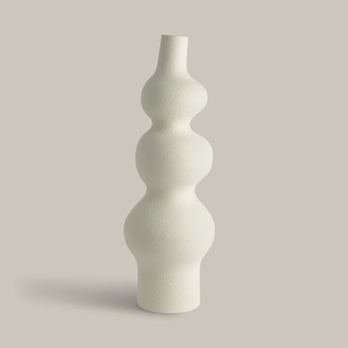The Overscale Vases in Matte White combine scale and organic form for decorative drama. Whether alone or in a grouping, these vases are the perfect graphic elements to complement any decor. Listed from left to right as shown in the image: Deoune Vase, Pasteur Vase, Fenouil Vase, Panisse Vase, and Muguet Vase.