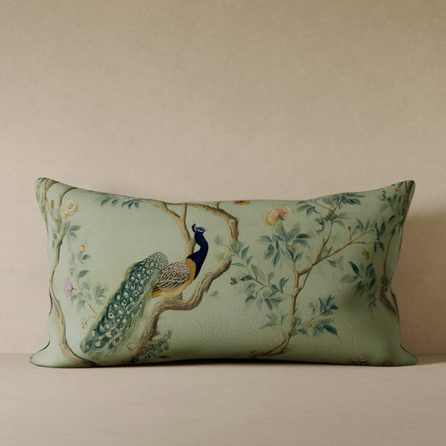 Drawn from the Lemieux et Cie archive, Peacock Plume celebrates the enduring beauty of its namesake bird. Sweeping tail feathers and flowering branches unfurl in elegant motion, recalling the grandeur of antique hand-painted panels. Crafted in JB Martin performance velvet and made to order in the USA, this pillow brings movement and heritage to the modern home.