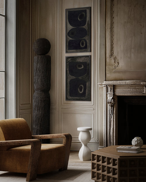 Untitled Print B1 is a refined exploration of Pierre Emmanuel Martin’s signature technique and profound artistic vision. This limited-edition fine art print, one of only 10 in its series, captures the essence of Martin’s process. Originally painted on raw linen, using layers of plaster, ground coffee, acrylic, and Chinese ink, Martin evokes a harmonious interplay of texture, tone and depth.