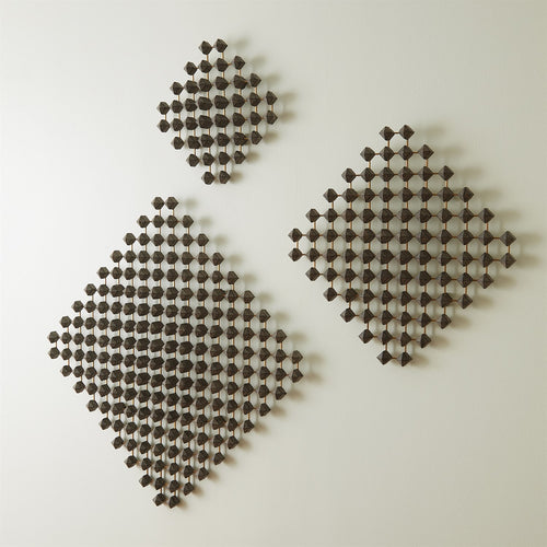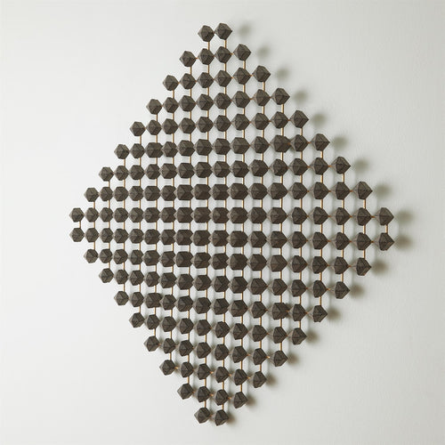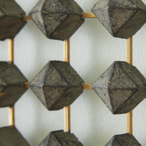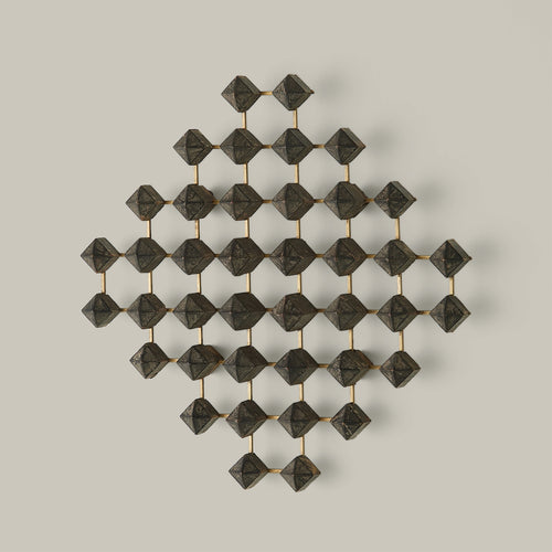 The Ramus decorative wall sculpture combines wood, brass, and iron into a striking diamond shape. Featuring intricate hand-carved wood relief, it brings a touch of artistry and elegance to any space. The blend of materials and textures adds depth and sophistication, making it a perfect standalone piece or a bold statement when hung in multiples over a sofa or bed. Ideal for adding character and charm to your home, this wall art piece is a testament to fine craftsmanship and modern design.