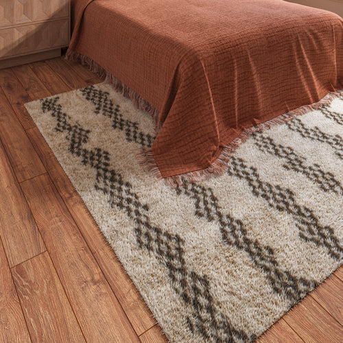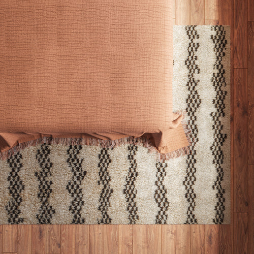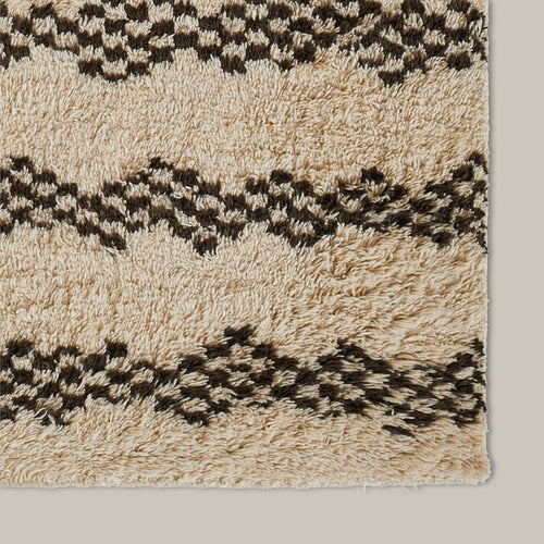 Super soft, plush, and hand knotted with 100% New Zealand wool, each rug in the Roanne collection is luxurious and offers loads of shaggy pile for extra comfort. Paying homage to traditional Beni Ourain Moroccan style rugs, this collection has designs that incorporate the natural look and beauty of simple wool with speckled accents or check-pattern detailing. Minimal but bold, these rugs deliver a more modern, dialed down Moroccan vibe.