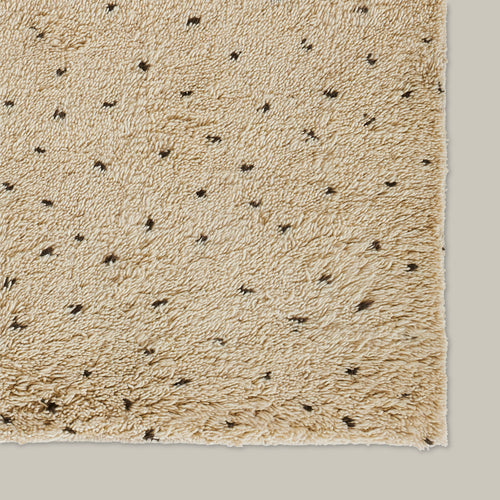 Super soft, plush, and hand knotted with 100% New Zealand wool, each rug in the Roanne collection is luxurious and offers loads of shaggy pile for extra comfort. Paying homage to traditional Beni Ourain Moroccan style rugs, this collection has designs that incorporate the natural look and beauty of simple wool with speckled accents or check-pattern detailing. Minimal but bold, these rugs deliver a more modern, dialed down Moroccan vibe.