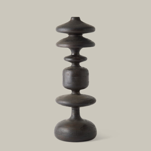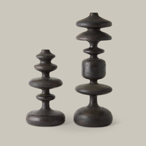 The Romain Totems by Lemieux et Cie are striking sculptural forms, hand-turned from solid wood with undulating silhouettes. Generously sized, and finished in a deep espresso stain, they merge rustic warmth with modern sophistication—making a bold, artful statement in any space.