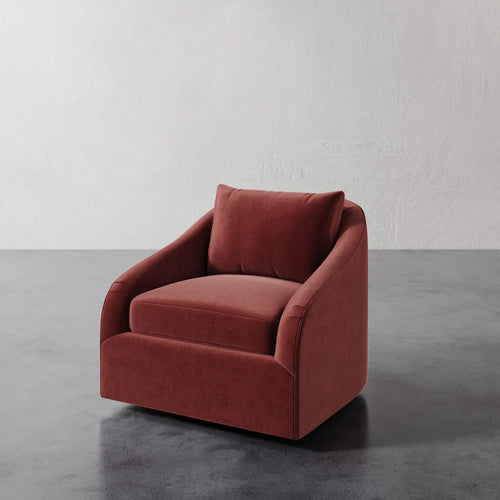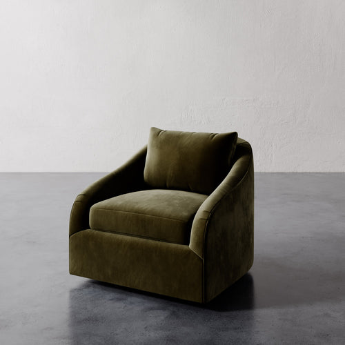 The Rousseau Swivel Chair from Lemieux et Cie is a study in quiet elegance, its graceful lines and sculptural silhouette evoking the refined restraint of 1940s French design. The subtly sloped arms lend a soft curvature, recalling the enveloping sophistication found in the interiors of Chanel’s Rue Cambon apartment. Made-to-order in a variety of luxurious fabrics, its tailored form feels both grounded and ethereal—a perfect balance of comfort and couture. With an understated yet distinct presence, the Rousseau Chair invites a timeless allure into any space, seamlessly bridging past and present.