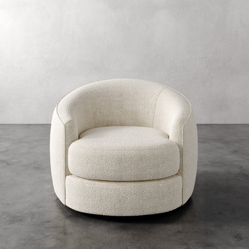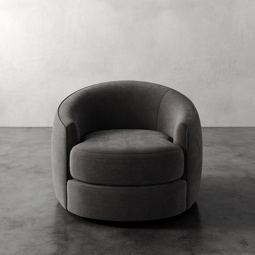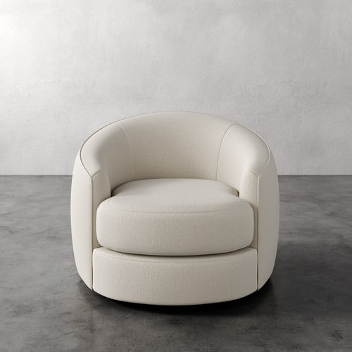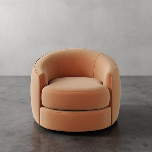 The Rulmann Swivel Chair embodies the collection's ethos of mid-century organic modernism into a singular, sculptural seat. With a grounded base and fluid 360° movement, the Rulmann Swivel draws inspiration from the legacy of Kagan, Royère, and Noguchi, where motion and form coalesce.