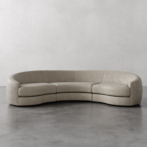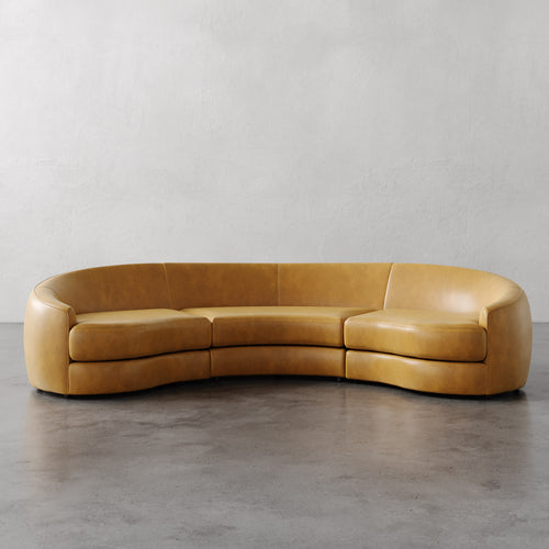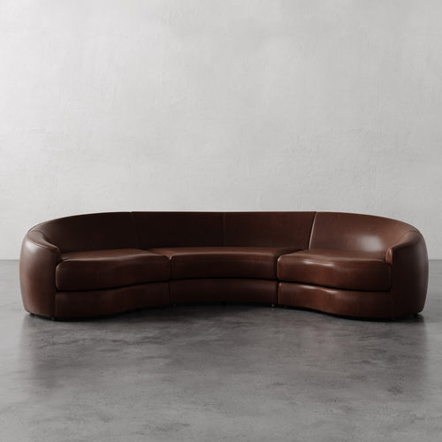 Drawn from the ethos of mid-century organic modernism, the Rulmann Leather Collection embodies the curvilinear genius of Kagan, Royère, and Noguchi. Each module is sculpted, low-slung, and materially grounded, inviting personal reconfiguration. Sofa becomes chaise becomes multi-piece conversation sectional. Modularity is not a function, but a philosophy, a living system of sculpture and repose. Handcrafted in North Carolina, Rulmann is available in multiple modular components. Designed for permanence, built for expression.