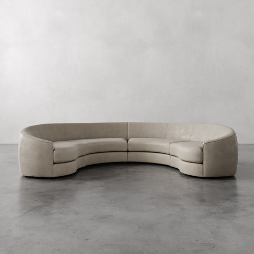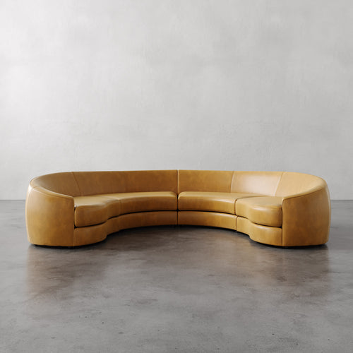 Drawn from the ethos of mid-century organic modernism, the Rulmann Leather Collection embodies the curvilinear genius of Kagan, Royère, and Noguchi. Each module is sculpted, low-slung, and materially grounded, inviting personal reconfiguration. Sofa becomes chaise becomes multi-piece conversation sectional. Modularity is not a function, but a philosophy, a living system of sculpture and repose. Handcrafted in North Carolina, Rulmann is available in multiple modular components. Designed for permanence, built for expression.