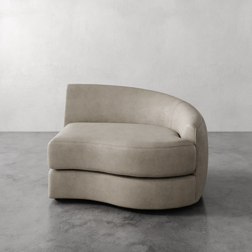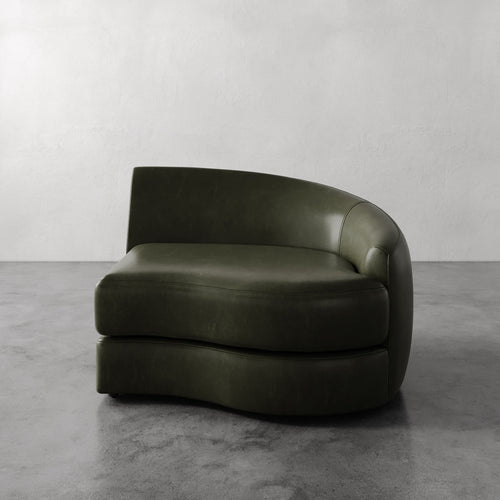 Drawn from the ethos of mid-century organic modernism, the Rulmann Leather Collection embodies the curvilinear genius of Kagan, Royère, and Noguchi. Each module is sculpted, low-slung, and materially grounded, inviting personal reconfiguration. Sofa becomes chaise becomes multi-piece conversation sectional. Modularity is not a function, but a philosophy, a living system of sculpture and repose. Handcrafted in North Carolina, Rulmann is available in multiple modular components. Designed for permanence, built for expression.
