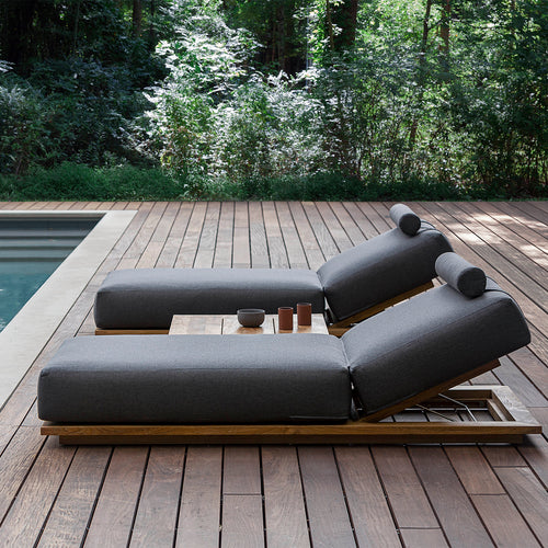 The S2 Outdoor Chaise Lounge draws inspiration from modern architectural elements, featuring a sturdy solid teak wood base with deep, luxurious cushions for ultimate comfort. Includes a versatile round bolster head rest pillow for luxurious relaxation. Designed for both beauty and function, the S2 redefines outdoor living with a sophisticated presence that transforms any space into a refined retreat.