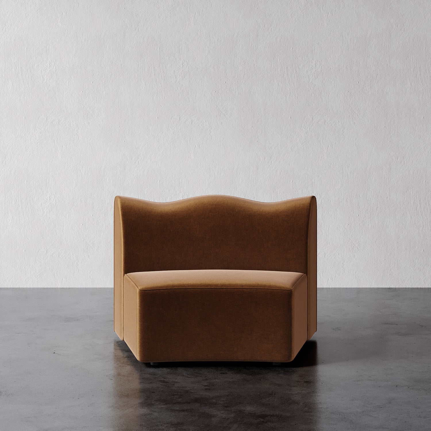 The Serpentine Sectional draws on the biomorphic lineage of Jean Royère and Vladimir Kagan, offering a restorative counterpoint to angular interiors. Flowing curves create a visual breath, a quiet architecture of calm. Designed as a multi-piece composition, the Serpentine’s soft contours and modular scale bring spatial grace to living rooms, libraries, or open floorplans. Modules can be configured into sweeping curves or anchored arrangements to suit the horizon of the space.