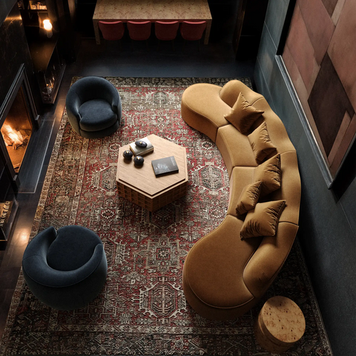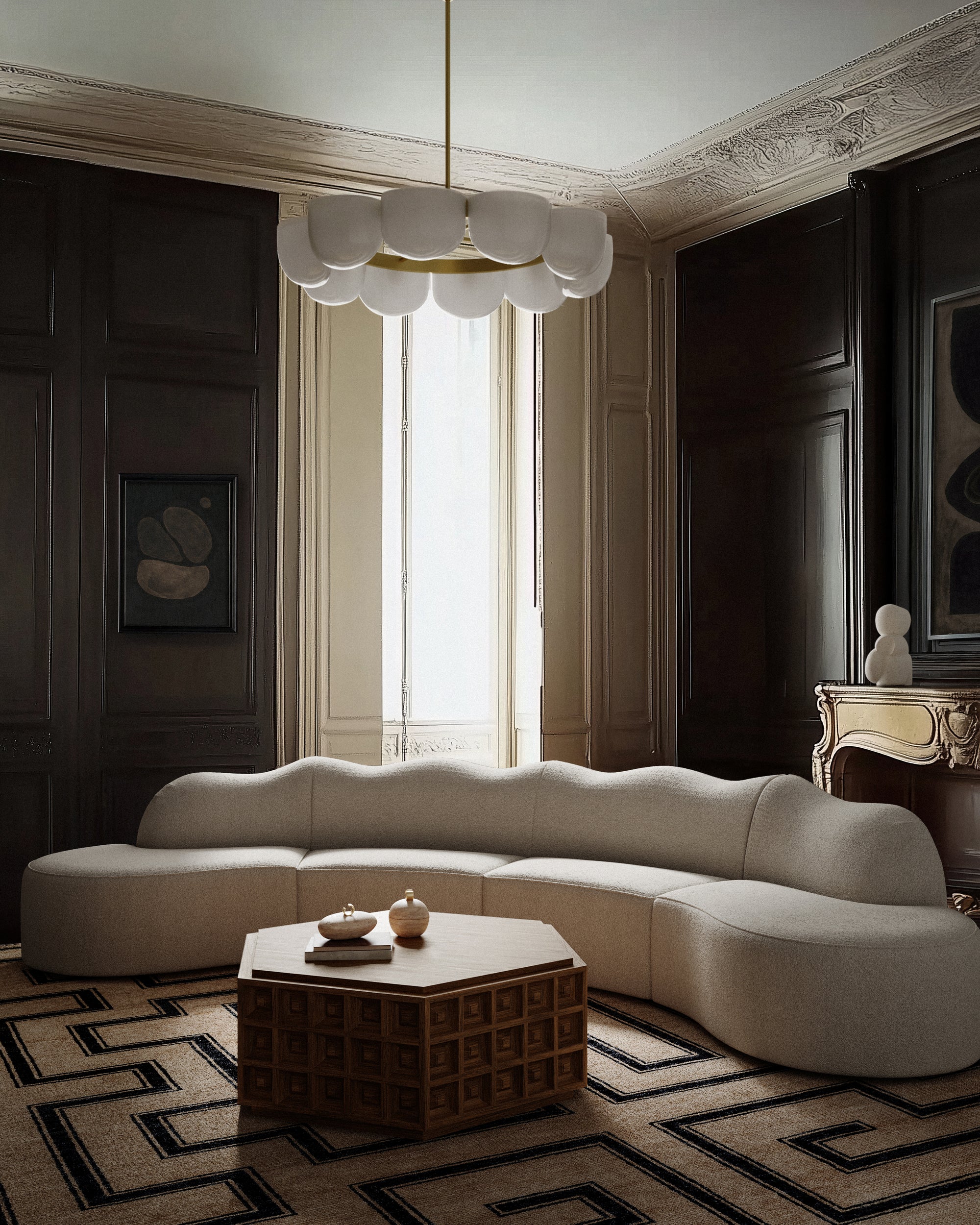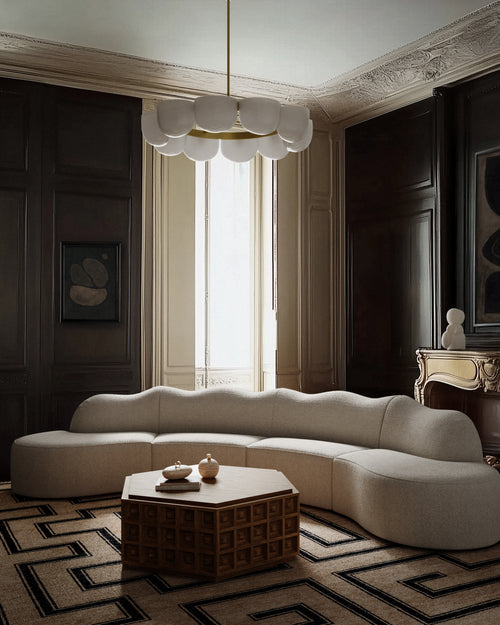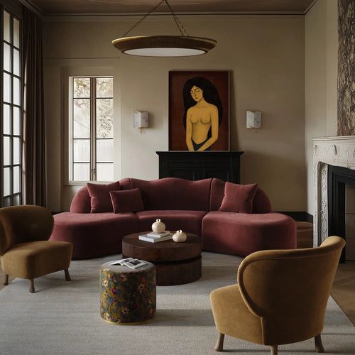 The Serpentine Sectional draws on the biomorphic, flowing forms of Jean Royère and Vladimir Kagan, offering a softer alternative to angular furniture. Gentle curves create breathing room and a sense of calm in any space. Designed as a multi-piece composition, the Serpentine's modular scale works beautifully in living rooms, libraries, or open floor plans. Configure modules into sweeping curves or grounded arrangements by adding wedge units to suit your space. Deep, lounge-forward seating enhances comfort from every angle.