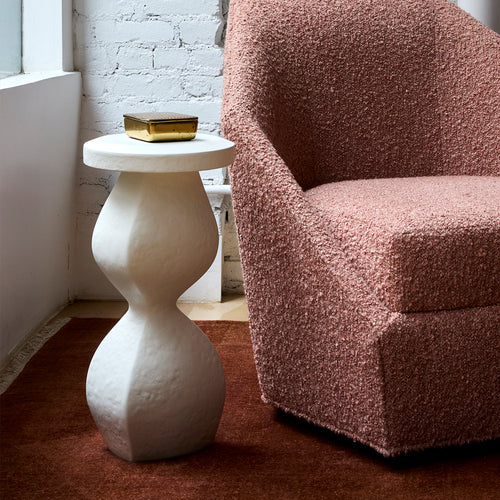 The Souple Drinks Table is a small sculptural plaster piece with an organically shaped, undulating form. Just the right height for holding drinks or a book, it combines functionality with artistic design. Its compact size makes it perfect for small spaces, adding a touch of modern elegance without a huge footprint. Ideal for living areas or cozy corners, the Souple Drinks Table is both practical and visually striking.