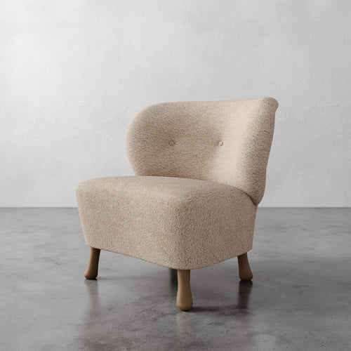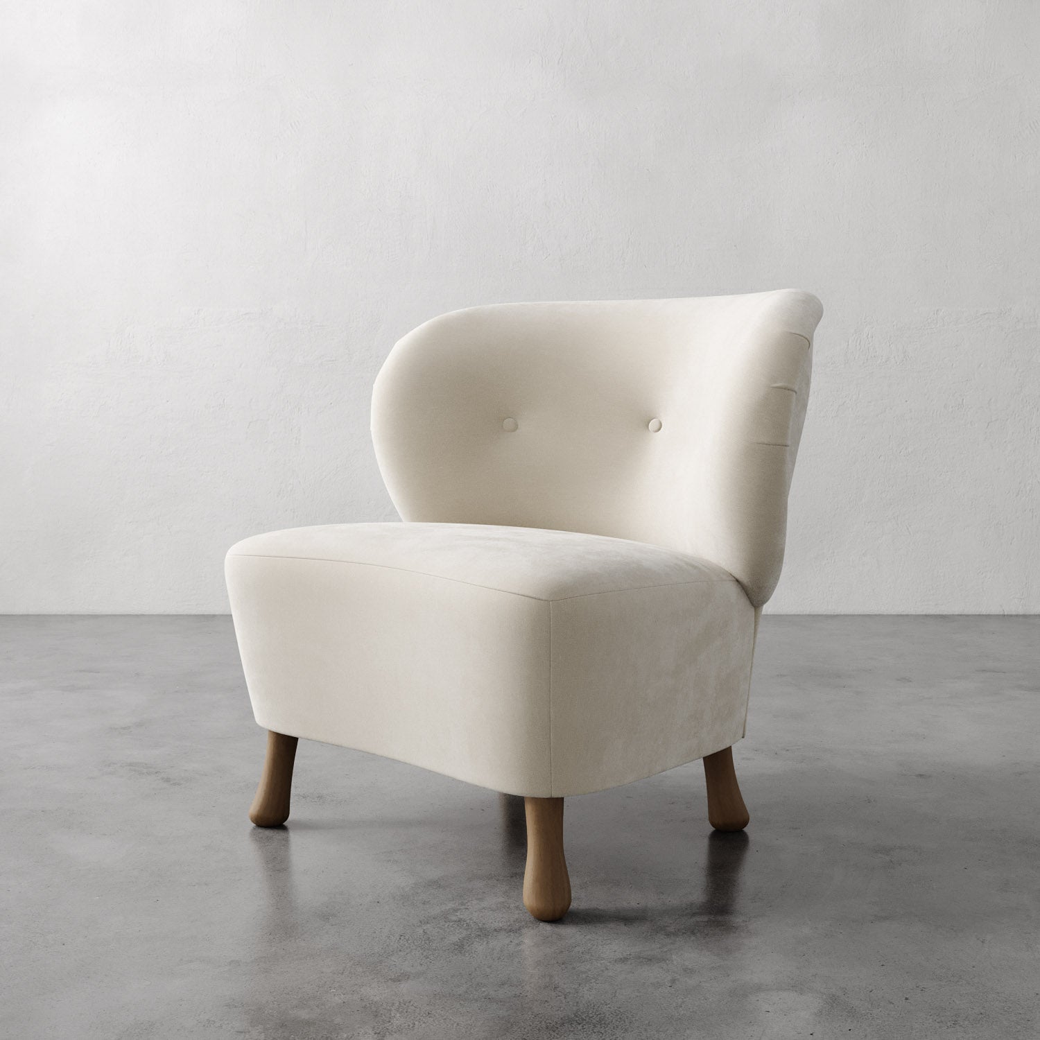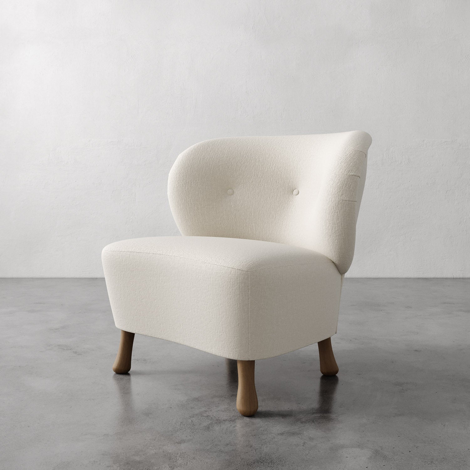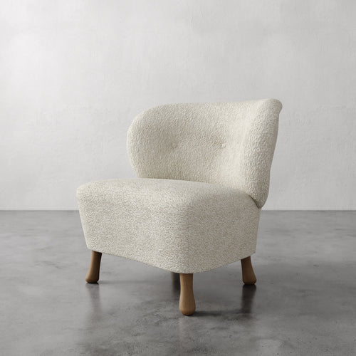 The Tourenne Chair from Lemieux et Cie is a celebration of organic modernism, its sculptural silhouette resting atop shapely hand-carved solid wood legs, is reminiscent of the beloved Clam Chair by Philip Arctander and the sinuous curves of Finn Juhl’s masterful designs. With a softly enveloping backrest and plush, deep seat, it exudes both warmth and artistry—an invitation to linger. A piece that balances playfulness with sophistication, the Tourenne Chair is a timeless homage to mid-century innovation.