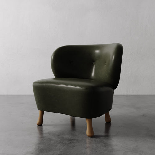 The Tourenne Chair in leather from Lemieux et Cie is a celebration of organic modernism, its sculptural silhouette resting atop shapely hand-carved solid wood legs, is reminiscent of the beloved Clam Chair by Philip Arctander and the sinuous curves of Finn Juhl’s masterful designs. With a softly enveloping backrest and plush, deep seat, it exudes both warmth and artistry—an invitation to linger. A piece that balances playfulness with sophistication, the Tourenne Chair is a timeless homage to mid-century innovation.