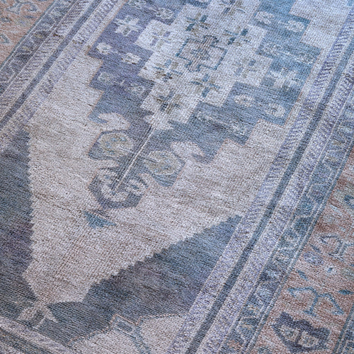 Anatolian village rugs, handwoven in rural Turkey during the 1960s and 1970s, embody a rich tradition of craft and cultural heritage. Created by village weavers using hand-spun wool from their own flocks and dyed exclusively with vegetable pigments, each rug carries the subtle variations and artistry that make these pieces so distinctive. Their lightweight construction allows for versatile placement - from foyers and bedrooms to living spaces or layered arrangements - while their geometric motifs lend a sense of timeless beauty and quiet luxury to any interior.