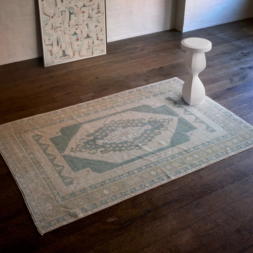 Anatolian village rugs, handwoven in rural Turkey during the 1960s and 1970s, embody a rich tradition of craft and cultural heritage. Created by village weavers using hand-spun wool from their own flocks and dyed exclusively with vegetable pigments, each rug carries the subtle variations and artistry that make these pieces so distinctive. Their lightweight construction allows for versatile placement - from foyers and bedrooms to living spaces or layered arrangements - while their geometric motifs lend a sense of timeless beauty and quiet luxury to any interior.