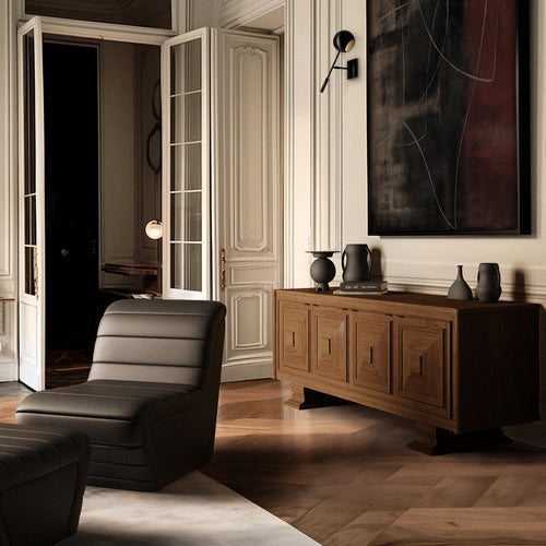 Step into the allure of 1930s French sophistication with our exquisitely hand-crafted Voltaire sideboard, a homage to the Post-Deco era. Meticulously designed, this sideboard captures the essence of that design period through its sleek lines, luxurious materials, and intricate geometric detailing. Elevate your space with a touch of vintage elegance, seamlessly blending the past with the present in a statement piece that resonates with timeless beauty.