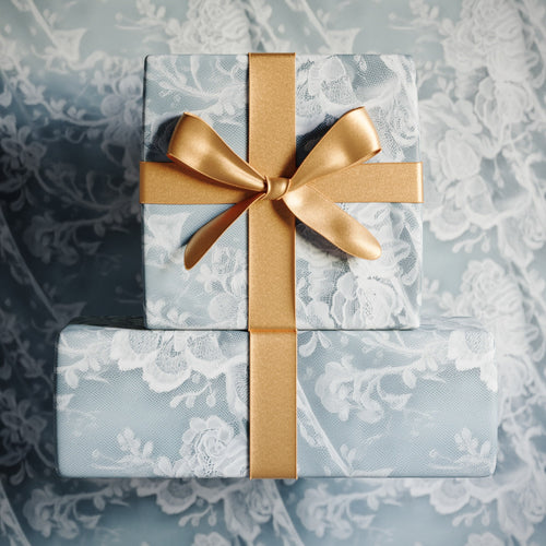 Before lace was printed, knotted, or woven for celebrations, it was made by hand. French Lace Gift Wrapping Paper is inspired by Alençon needle lace, a tradition so refined that Louis XIV created a royal workshop to preserve it in 1665. It features delicate florals and scalloped edges in soft blue, details once saved for special occasions. This high-quality wrapping paper brings vintage textile beauty to modern gifts. Use it for weddings, anniversaries, engagements, and other important milestones.
